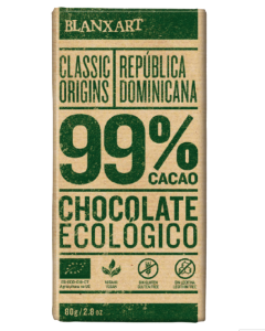 Organic Dark chocolate elaborated with 99% Trinitario Cocoa from Dominican Republic.